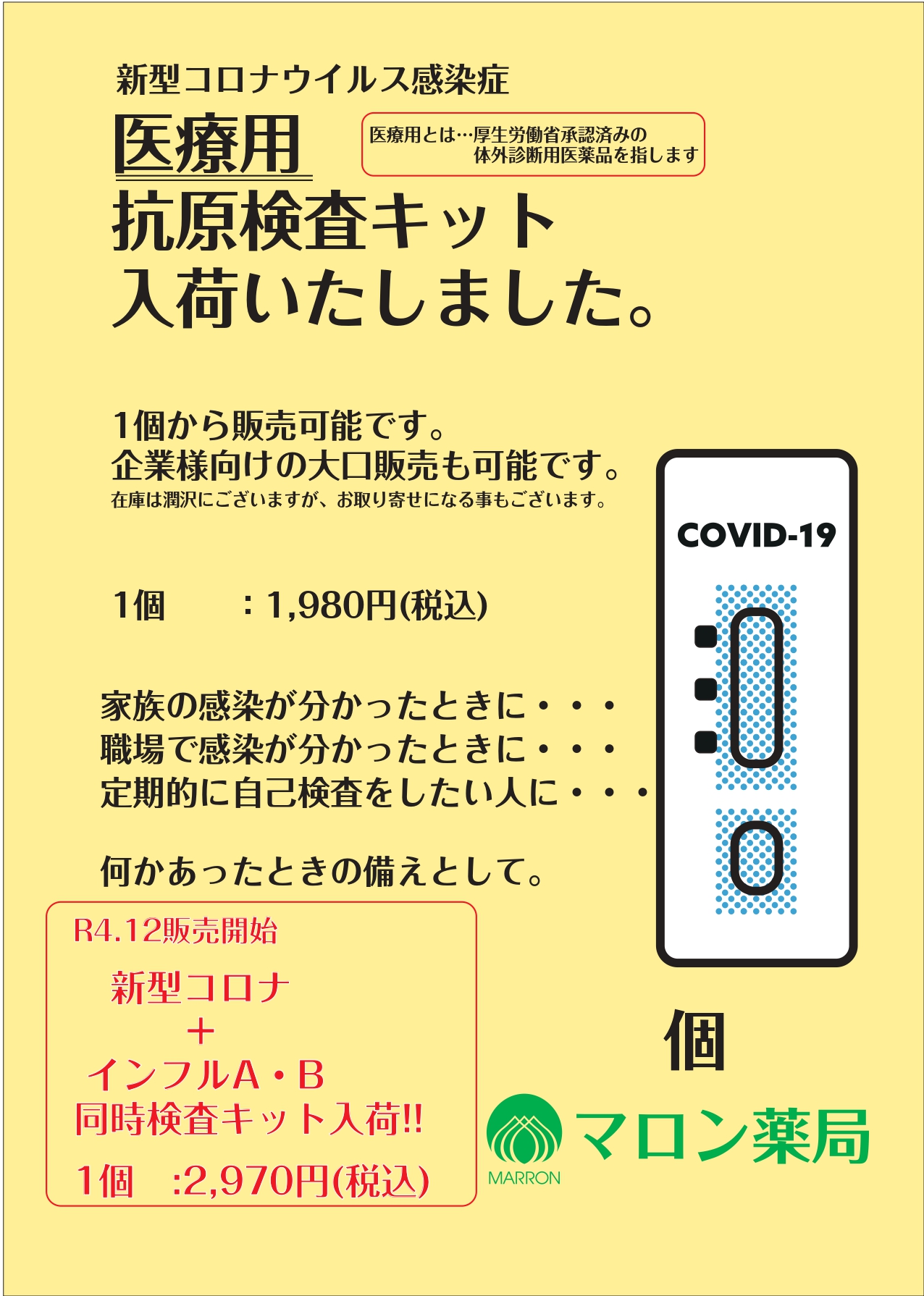 R4.12より「新型コロナ・インフル同時検査キット」の販売を行っております。
